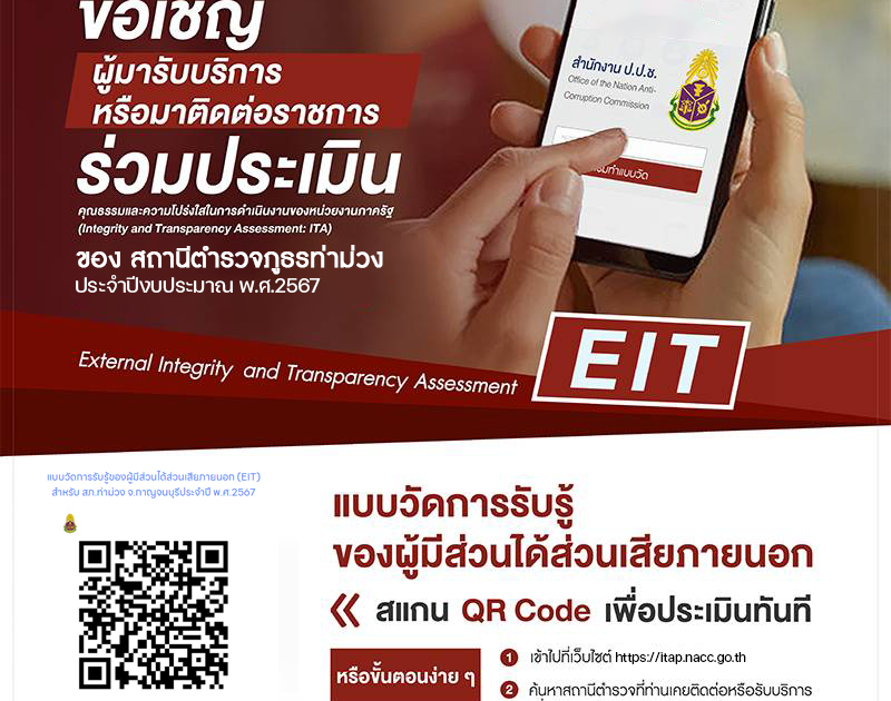 ขอเชิญผู้มารับบริการหรือมาติดต่อราชการร่วมประเมินคุณธรรมและความโปร่งใสในการดำเนินงานของหน่วยงานภาครัฐ