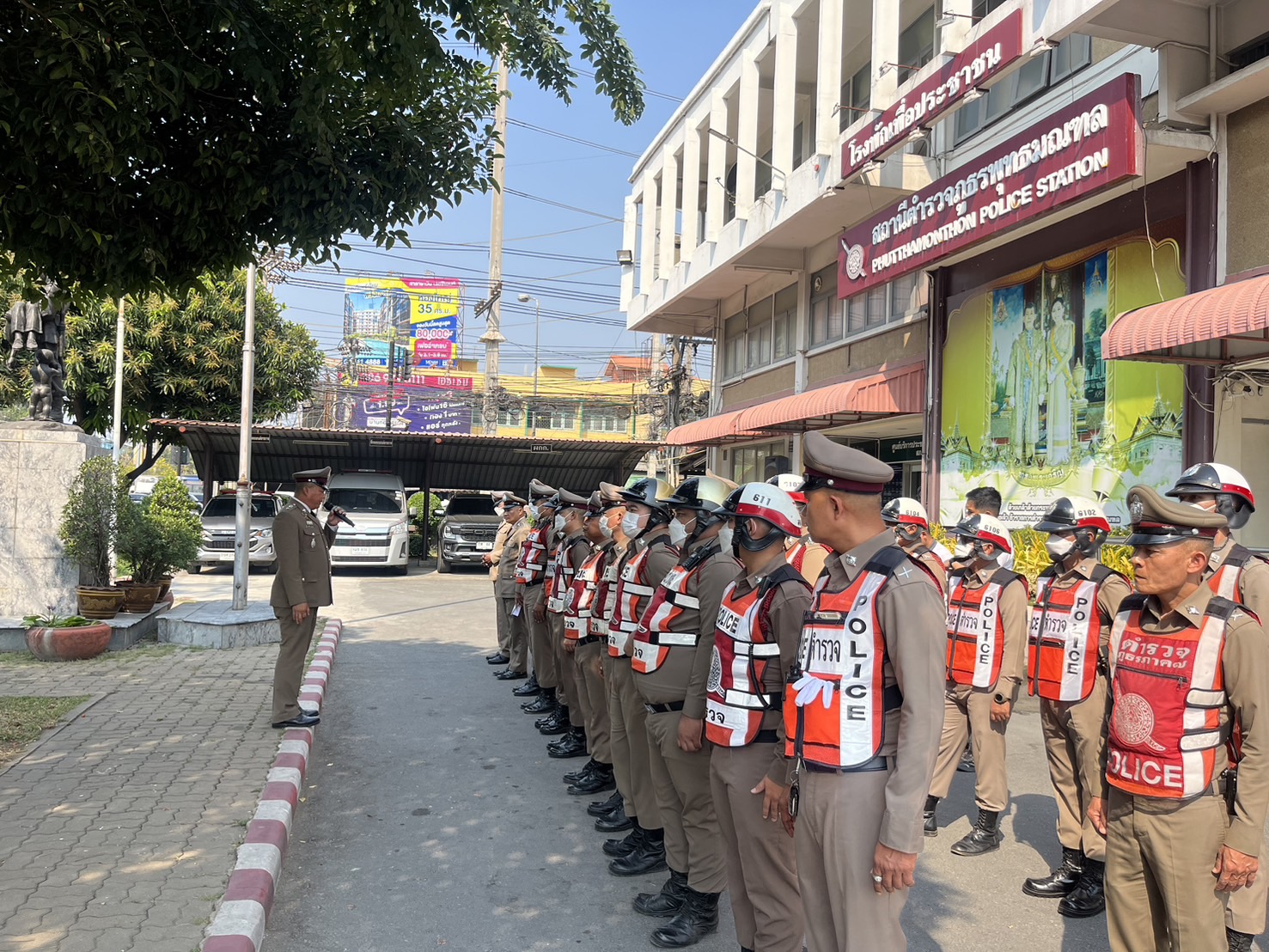 พ.ต.ท.วิเชธ เชยกลิ่น รอง ผกก.สส.สภ.พุทธมณฑลปล่อยแถวชุดปฏิบัติการสืบสวนออกตรวจ จุดเสี่ยง จุดล่อแหลม พ