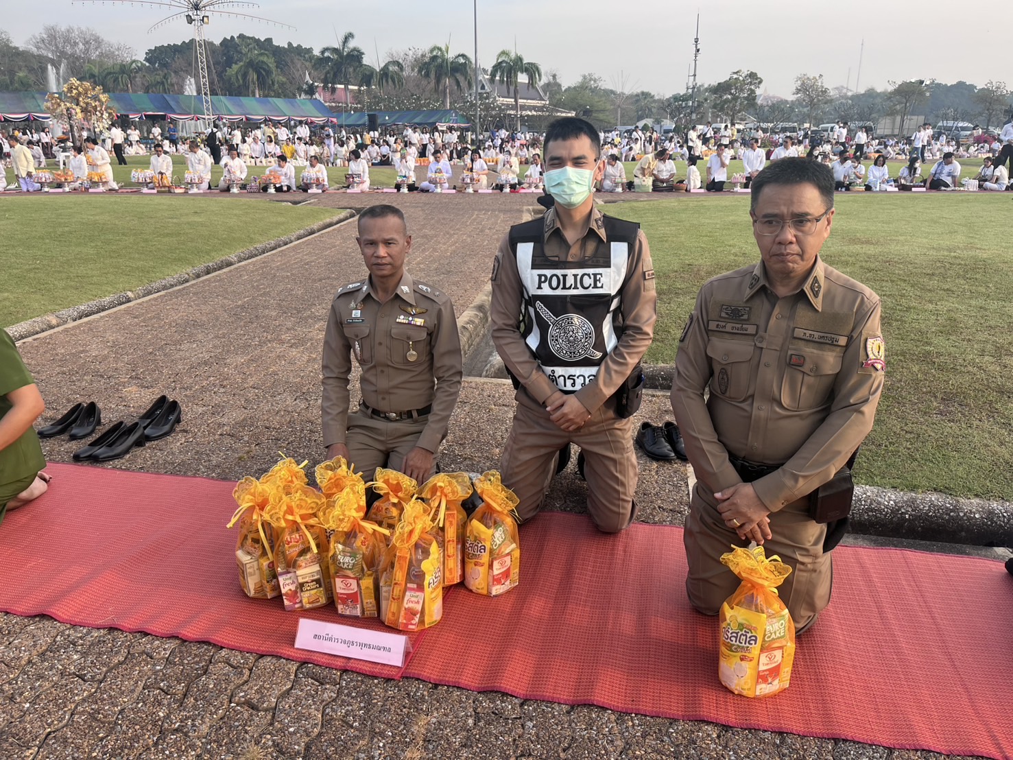 สารวัตรธุรการ พร้อมสายตรวจ ร่วมพิธีทำบุญใส่บาตร เนื่องในวันมาฆบูชา ภายในพุทธมณฑล