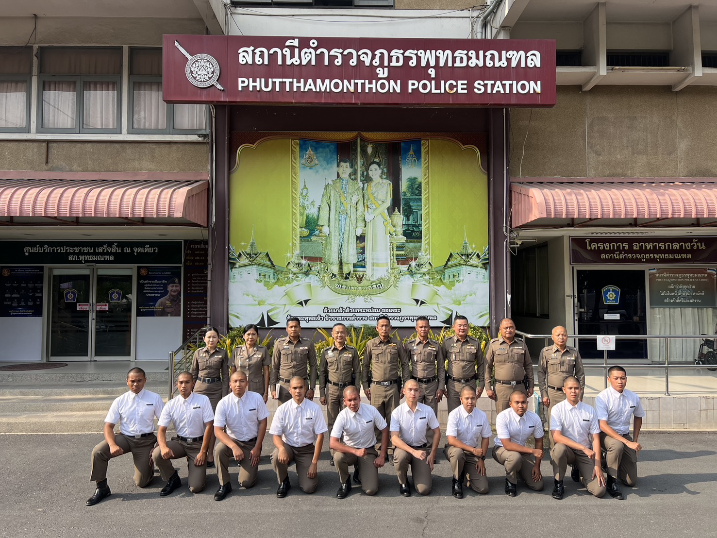 พ.ต.อ.เสรีฐกาญจน์ จันทร์ด้วง ผกก.สภ.พุทธมณฑล พ.ต.ท.เลอศักดิ์ ตุมรสุนทร รอง ผกก ป.สภ.พุทธมณฑล พ.ต.ท.ธ