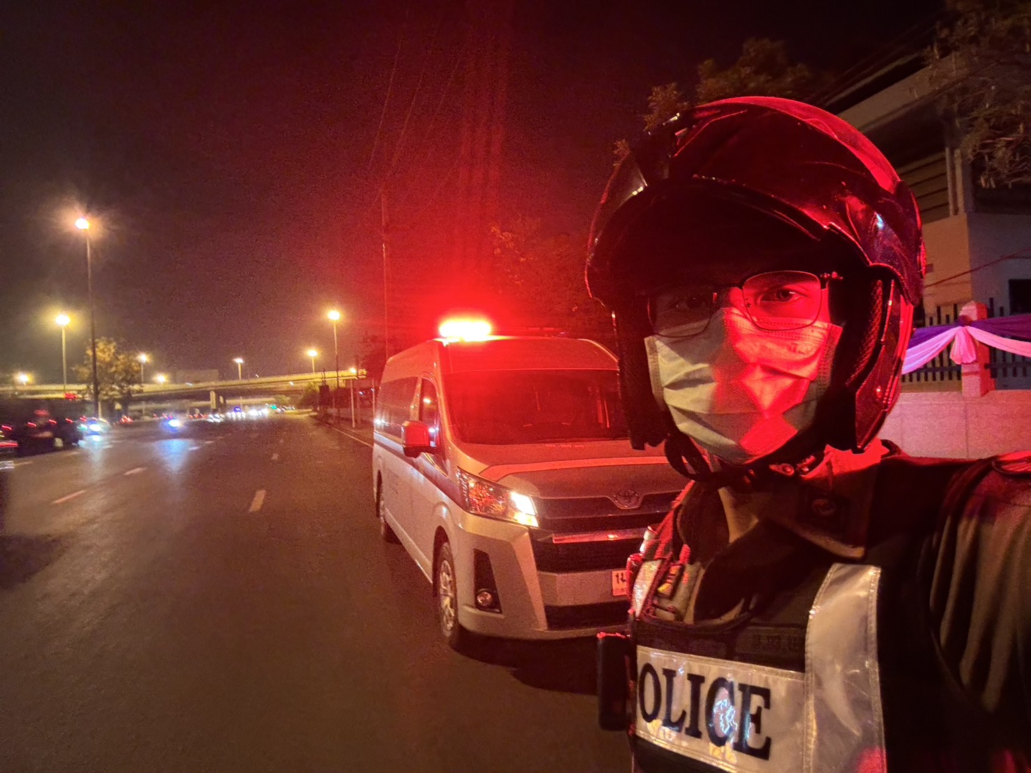 สายตรวจรถจักรยานยนต์ เขต 1 ว.4 เปิดสัญญาณไฟป้องกันเหตุแข่งรถในทาง ถนนบรมราชชนนี