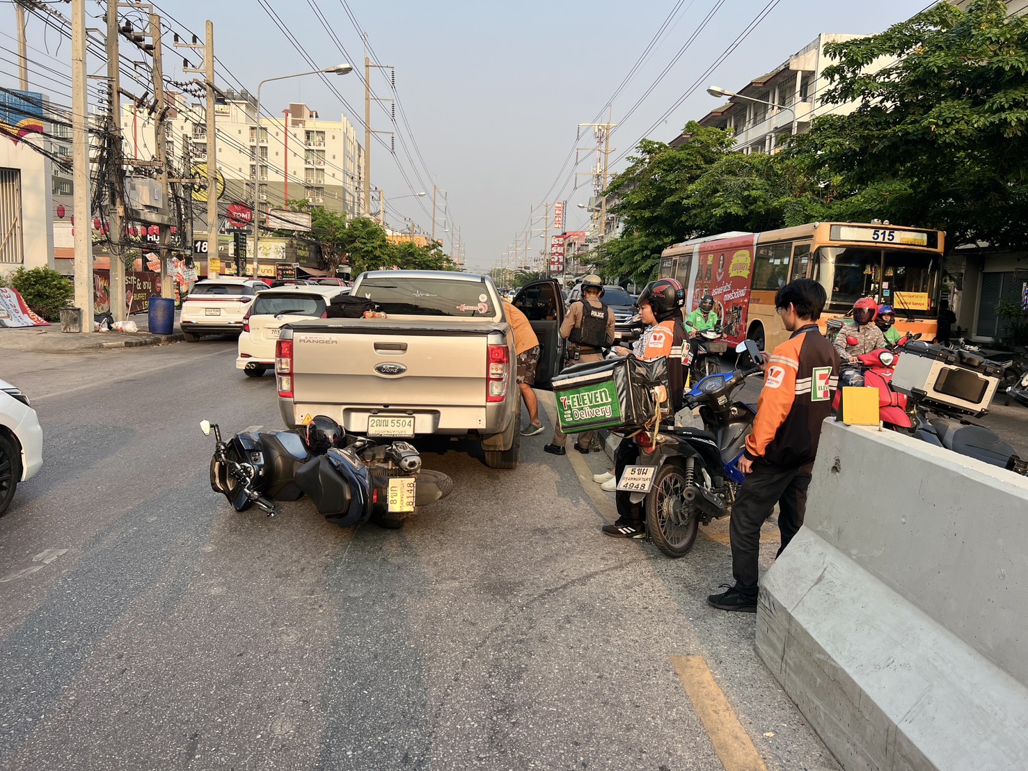 ตรวจสอบเหตุ ว.40 กระบะ+จยย. บริเวณหน้า ปตท.สนามกอล์ฟ บาดเจ็บ ญ.1 ราย กู้ภัยนำส่ง รพ.พุทธมณฑล ขอร้อยเ