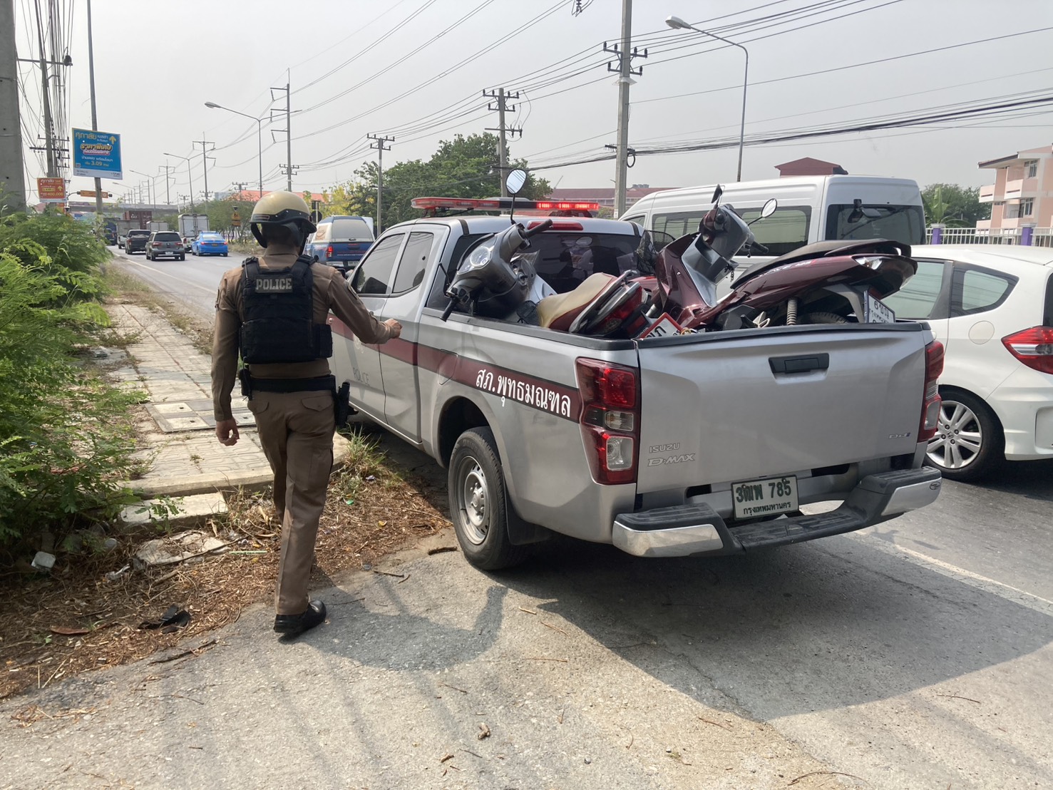 พนักงานสอบสวน (ร้อยเวร30) ตรวจสถานที่เกิดอุบติเหตุ