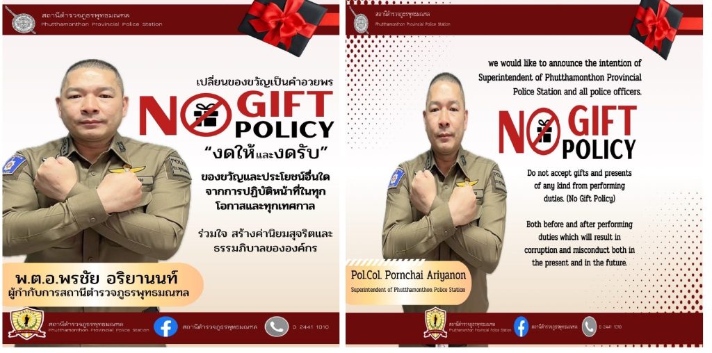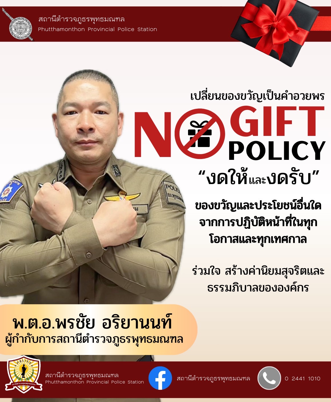 ผู้กำกับการสถานีตำรวจภูธรพุทธมณฑล ประกาศ งดให้ และ งดรับ No Gift Polocy