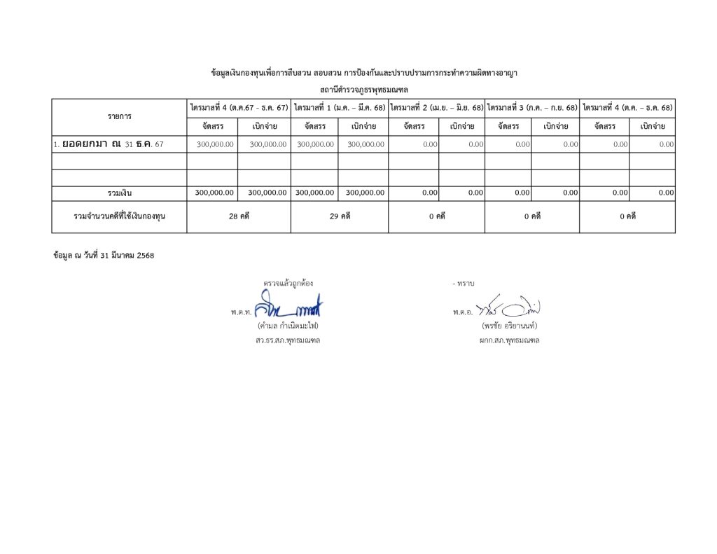 O13 ข้อมูลเงินกองทุนเพื่อการสืบสวน สอบสวน การป้องกันและปราบปรามการกระทำผิดทางอาญา